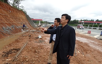 由于我市近日連續下雨,2016年4月21日上午,景德鎮市國控集團黨委書記、董事長吳林、集團總經理陳望賢專程到集團飛虹大橋建設項目、羅家灘收費站配套建設項目施工現場檢查工作,并召開抗汛搶險、安全施工現場會。