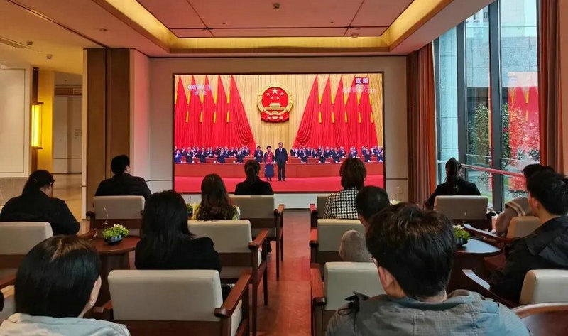 市國資委黨委委員、副主任、省陶瓷工業公司黨委書記、市國控集團轉型發展領導小組辦公室主任吳雄飛,市國控集團黨委副書記、總經理陳望賢等集團領導班子成員,以及全體黨員干部職工收看大會盛況,認真學習習近平總書記重要講話精神。