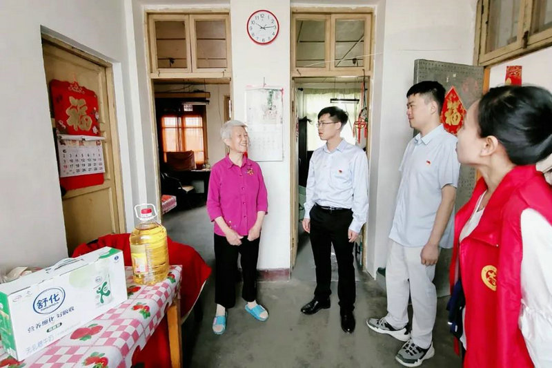 5月28日上午,該支部一行10余名黨員,走進西郊街道勝利社區,積極主動深入社區服務于民,認真了解群眾的真實需求,并積極為路過市民以“講故事”的形式講解黨史,向社區中老年人傳播防患電信詐騙、健康養生理念等知識,受到群眾的好評。同時,在了解到該轄區有幾戶生活困難或無經濟來源的孤寡老幼后,在支部書記的帶領下,支部黨員們帶著牛奶和食用油等物品,對其逐一進行了走訪慰問,并認真傾聽了他們各自的實際困難。慰問中,隊員們還將文具和書包送給一名爺爺撫養長大的小朋友,并鼓勵他陽光開朗、好好學習。