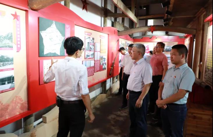 下午1點,集團領導班子一行來到篁塢村方志敏烈士舊居,開展黨史學習教育紅色活動。在炎炎烈日下,集團領導班子來到方志敏紀念塔前,緩緩走上臺階,懷著崇敬的心情向革命烈士敬獻花籃、默哀致敬、彎腰鞠躬,表達了對革命烈士的緬懷和哀思,并在莊嚴的方志敏紀念碑前,余笑兵帶頭領誓,重溫入黨誓詞。順著臺階,講解員認真講解,集團領導班子來到方志敏舊居,一同回顧那一段令人可歌可泣的方志敏革命歷史。