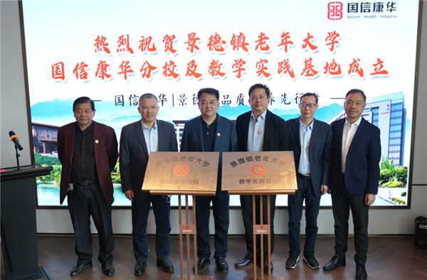 4月19日上午,國信康華舉行景德鎮老年大學國信康華分校暨教學實踐基地揭牌儀式。原景德鎮市人民政府副市長、市老年大學名譽校長張良華,原市商務局局長、二級巡視員、市老年大學客座教授堯寧生,集團黨委書記、董事長余笑兵,黨委副書記、總經理胡景平,黨委委員、副總經理周長根,市委老干部局副局長、景德鎮老年大學常務副校長張慶革,副校長胡建中,副校長徐卉,以及景德鎮老年大學代表、學員出席揭牌儀式。
