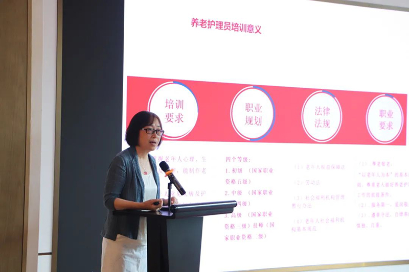 市紅十字會黨組書記劉娟書記在開班儀式講話中表示,在老齡化社會的背景下,打造專業養老護理團隊的工作是康養事業的重要組成部分,也是提升養老服務水平的主要途徑。我們要進一步重視養老護理員培訓,舉辦養老護理員培訓班,通過系統培訓,強化護理員養老服務理念,提升養老護理人員工作能力和業務水平,向老人提供更為專業化、規范化和人性化的服務。