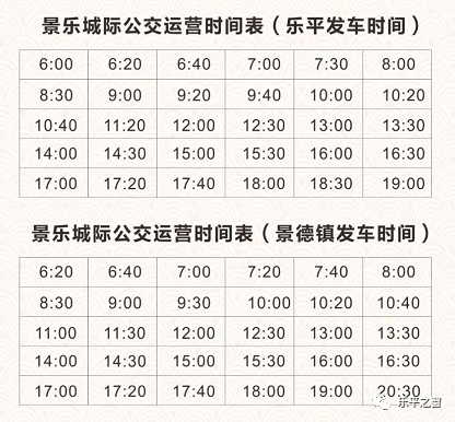 據了解,景樂城際公交線路全程48公里,始發站在樂平市贛東北商貿城華達購物廣場,經206國道,行駛至公交昌南停車場(在此站可中轉至景德鎮北站等多路公交車)。原樂平長運經營的景樂班線停止運行。新城際公交班線具體站點安排是:樂平市華達購物廣場-樂平九中-柳樹下村-湖塘村-枧頭村-龍溪大橋-楊家塢村-大田村-楊家畈村-塔前-樂平駕校-葉家村-桃林村-大園村-新橋村委會-良港村-富祥藥業-麗陽-農產品批發市場-陶青臺文創園-遠航物流-景德鎮第一中專-安新小區-二亭村委會-行政服務中心-交警支隊-市檢察院-國稅局-豪德貿易廣場-龍井路東風陶瓷-二中分校-公交昌南停車場。