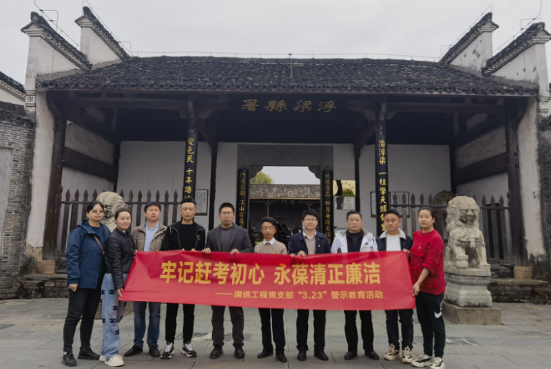 3月23日,國信工程黨支部書記劉培靖帶領全體黨員干部、積極分子前往浮梁縣古縣衙黨風廉政教育基地開展“3.23”警示教育。通過本次學習,進一步堅定了全體黨員干部忠誠履職擔當作為的決心,將以此次警示教育為契機,樹高線、守底線、明紅線、強黨性,認真履好肩上責,求真務實、苦干實干,不斷推進公司高質量發展,奮力走好新的趕考之路。