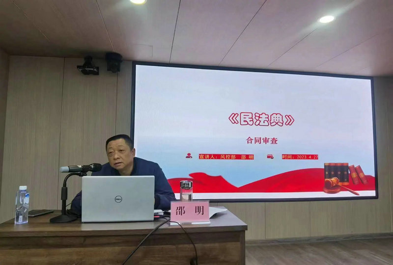 培訓(xùn)課上,邵明首先就《保守國(guó)家秘密法》《國(guó)防教育法》具體內(nèi)容以及相關(guān)規(guī)定向職工傳達(dá)學(xué)習(xí)。其次,對(duì)《民法典》之合同審查圍繞“由來”“合同目的”“主體合格”“內(nèi)容合法”等方面進(jìn)行了詳細(xì)闡述,具有極強(qiáng)的實(shí)用性、針對(duì)性、指導(dǎo)性。